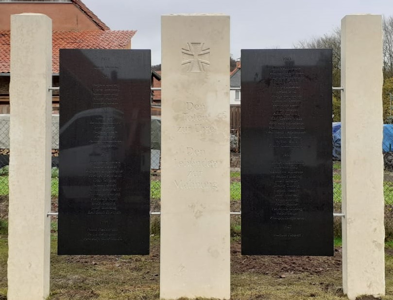 Der Heimatverein hat mit der Unterstützung der Gemeinde den bestehenden Gedenkstein für die Gefallenen des 1. Weltkrieges auf dem Friedhof restaurieren lassen und in diese Anlage einen Gedenkstein für die Gefallenen des 2. Weltkrieges integriert. Mit der Übergabe des Gedenksteins hat der Heimatverein das zu seiner Gründung formulierte Ziel – die Erneuerung des Bereiches zum Gedenken an die Gefallenen der Weltkriege – erreicht. Nach der Veranstaltung auf dem Friedhof wird der Tag mit Kaffee und Kuchen auf dem Saal abgerundet. Zu dieser Gelegenheit werden auch die aufwendig durch den Verein zusammengetragenen Informationen über die Gefallenen veröffentlicht und historische Briefe aus den Archiven durch den Bürgermeister vorgetragen.